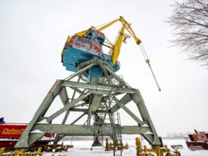 В России самый известный пример адаптивного использования портового крана – арт-объект «Дудинский жираф», созданный на основе портового крана «Кировец», в подарок к 350-летию заполярной Дудинки компанией «Норникель». Перед началом работ кран был полностью разобран, в нем не осталось никаких технологических элементов, после чего он был раскрашен орнаментами народов Таймыра и красиво подсвечен.