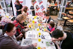 На площадке «Архитектурное оригами» участники изготовили из бумаги трехмерные открытки с изображениями таких объектов культурного наследия, как дом Палибина, Гараж Госплана и многих других. Кроме того, все желающие смогли создать дизайнерский значок с фрагментами столичных памятников, среди них мозаики станции метро «Маяковская», майоликовое панно Северного речного вокзала и скульптура Льва, воссозданная на крыше особняка Кекушевой в рамках реставрации.