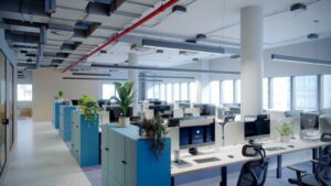 Новое представительство Московской биржи расположится на восьми этажах бизнес-центра «Газетный, 17» в сервисном офисе площадью 5 388 кв. м. Функциональное пространство, включающее зоны open space, кабинеты и переговорные различной конфигурации, акустические кабины, кофе-поинты, а также вместительный конференц-зал, позволит комфортно разметить сотрудников. В здании будут оборудованы 620 рабочих мест, часть которых можно будет использовать в гибридном формате, и они станут доступны для более чем 3 000 сотрудников. Проект реализуется по стандартам Business Club и адаптируется под индивидуальные требования заказчика.