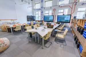 Параллельно большое внимание современные педагоги уделяют не только получению узко профессиональных навыков, но и soft skills — умению работать в команде и выстраивать коммуникацию, управлению проектами, критическому мышлению и эмоциональному интеллекту. Помогают в этом и эргономично продуманные образовательные пространства в школах.