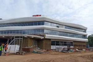 На сегодняшний день на объекте уже завершено устройство основных наружных инженерных сетей, ведутся фасадные работы, включая облицовку входной зоны декоративным стеклокомпозитом и установку элементов на входе. Также проводится расширение входной группы здания.