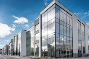 Фасады делового комплекса «ЮПорт» облицованы композитными панелями. Девелопером проекта выступает компания Regions Development.